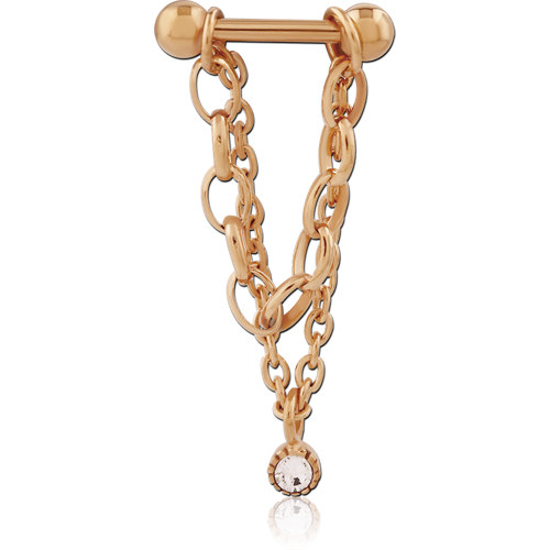 GOLD PVD COATED SURGICAL STEEL GRADE 316L TRAGUS MICRO BARBELL WITH CHAIN