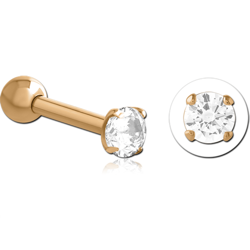 GOLD PVD COATED SURGICAL STEEL GRADE 316L ROUND PRONG SET JEWELED TRAGUS MICRO BARBELL FOR RHONA SUTTON