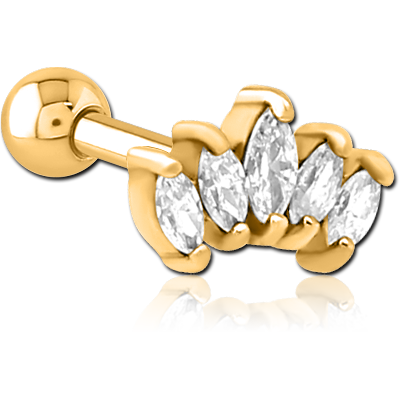 GOLD PVD COATED SURGICAL STEEL GRADE 316L JEWELED TRAGUS MICRO BARBELL