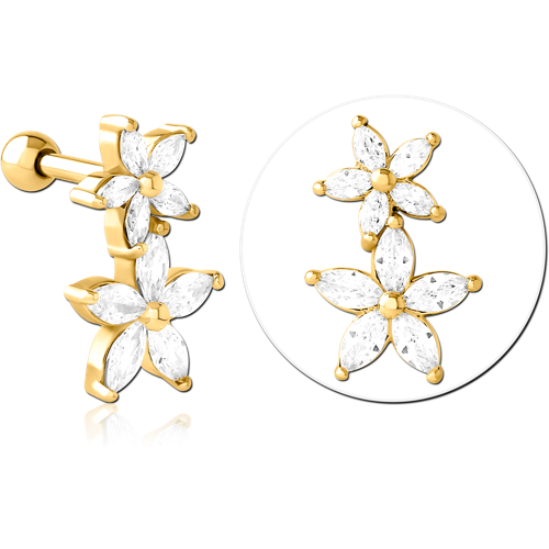 GOLD PVD COATED SURGICAL STEEL GRADE 316L JEWELED TRAGUS MICRO BARBELL