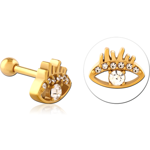 GOLD PVD COATED SURGICAL STEEL GRADE 316L JEWELED TRAGUS MICRO BARBELL