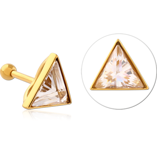GOLD PVD COATED SURGICAL STEEL GRADE 316L JEWELED TRAGUS MICRO BARBELL - TRIANGLE