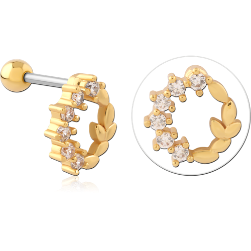 GOLD PVD COATED SURGICAL STEEL GRADE 316L JEWELED TRAGUS MICRO BARBELL SPECIAL NEW DESIGN