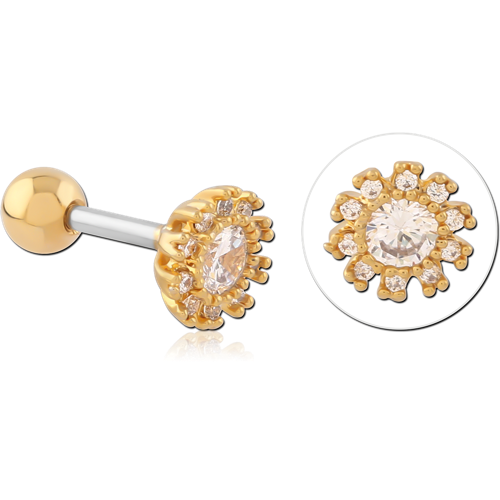 GOLD PVD COATED SURGICAL STEEL GRADE 316L JEWELED TRAGUS MICRO BARBELL SPECIAL NEW DESIGN