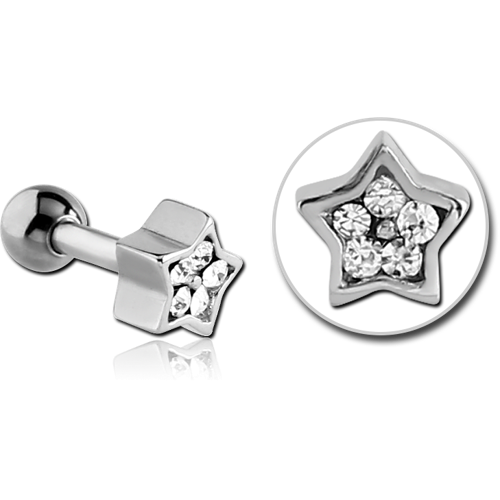 SURGICAL STEEL GRADE 316L JEWELED STAR TRAGUS MICRO BARBELL