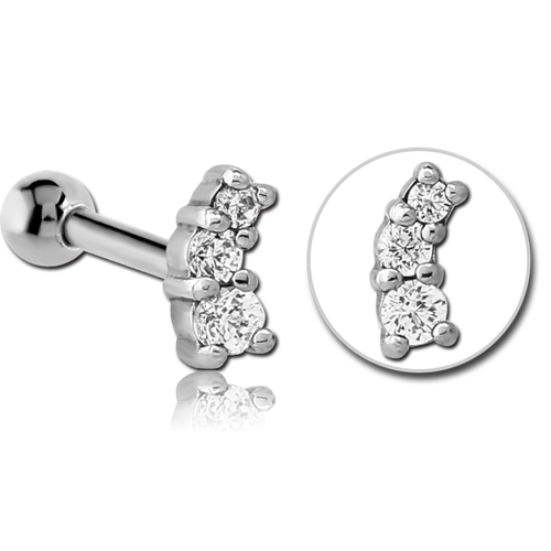 SURGICAL STEEL GRADE 316L JEWELED TRAGUS MICRO BARBELL