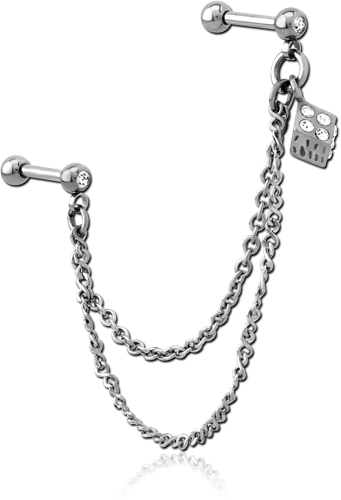 SURGICAL STEEL GRADE 316L JEWELED TRAGUS MICRO BARBELLS CHAIN LINKED - RUBIK