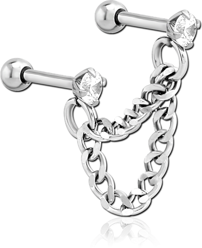 SURGICAL STEEL GRADE 316L JEWELED TRAGUS MICRO BARBELLS CHAIN LINKED - KEY