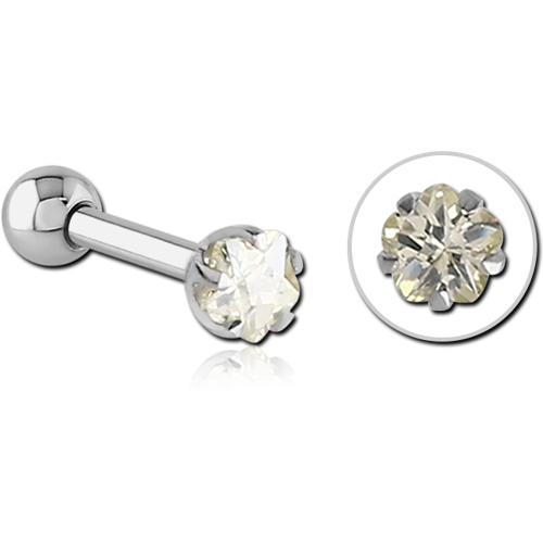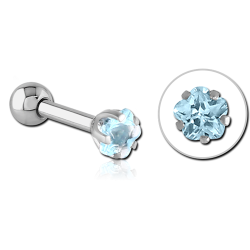 SURGICAL STEEL GRADE 316L FLOWER PRONG SET JEWELED TRAGUS MICRO BARBELL