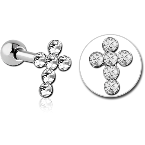 SURGICAL STEEL GRADE 316L JEWELED CROSS TRAGUS MICRO BARBELL