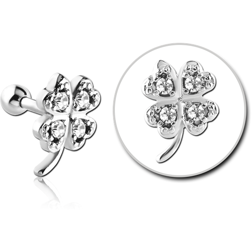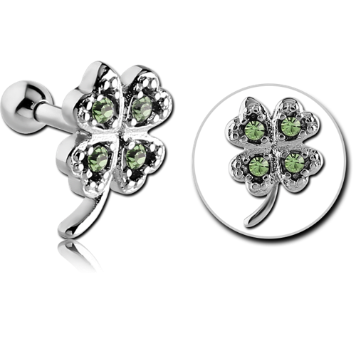 SURGICAL STEEL GRADE 316L JEWELED TRAGUS MICRO BARBELL - SHAMROCK