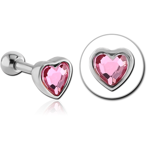 SURGICAL STEEL GRADE 316L JEWELED TRAGUS MICRO BARBELL - HEART