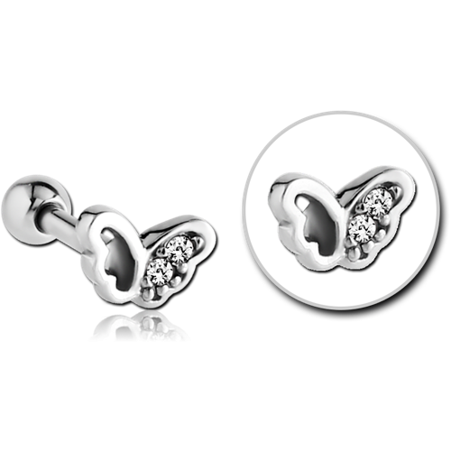 SURGICAL STEEL GRADE 316L JEWELED TRAGUS MICRO BARBELL - BUTTERFLY