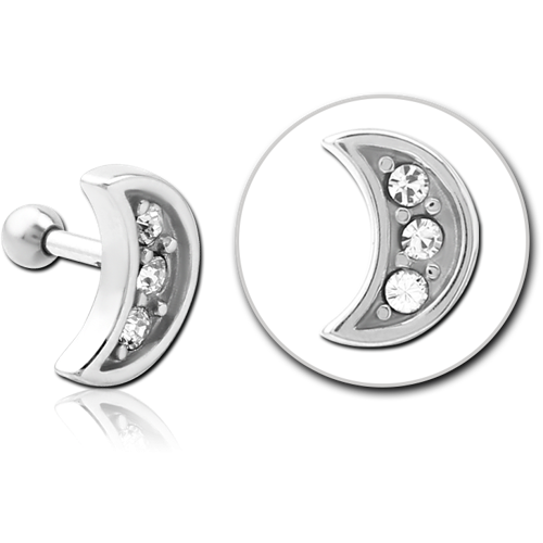 SURGICAL STEEL GRADE 316L JEWELED TRAGUS MICRO BARBELL - CRESCENT