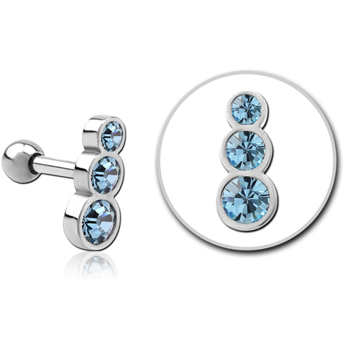 SURGICAL STEEL GRADE 316L JEWELED TRAGUS MICRO BARBELL