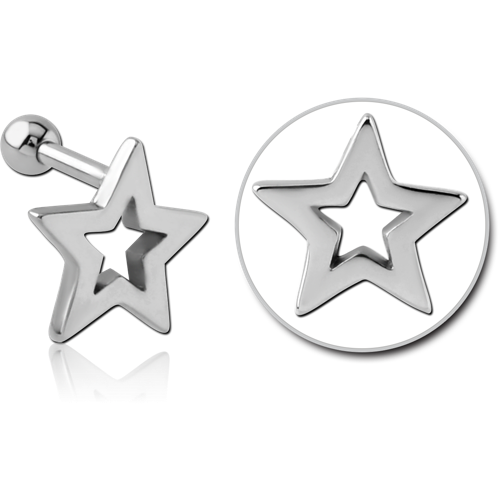 SURGICAL STEEL GRADE 316L TRAGUS MICRO BARBELL - STAR