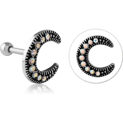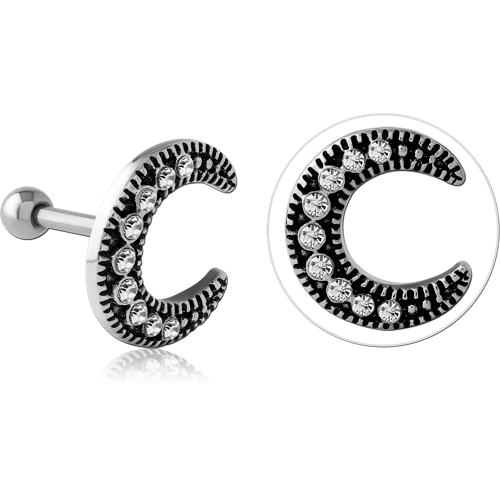 SURGICAL STEEL GRADE 316L JEWELED TRAGUS MICRO BARBELL - CRESCENT