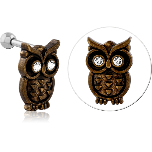SURGICAL STEEL GRADE 316L JEWELED TRAGUS ANTIQUE BRASS PVD COATED MICRO BARBELL