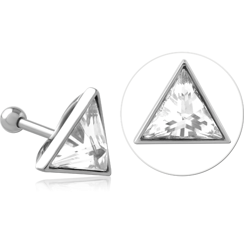 SURGICAL STEEL GRADE 316L JEWELED TRAGUS MICRO BARBELL - TRIANGLE