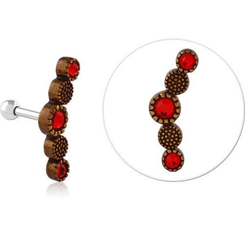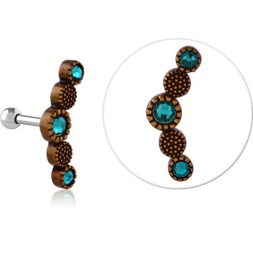 SURGICAL STEEL GRADE 316L JEWELED TRAGUS ANTIQUE BRASS PVD COATED MICRO BARBELL
