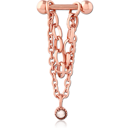 ROSE GOLD PVD COATED SURGICAL STEEL GRADE 316L TRAGUS MICRO BARBELL WITH CHAIN