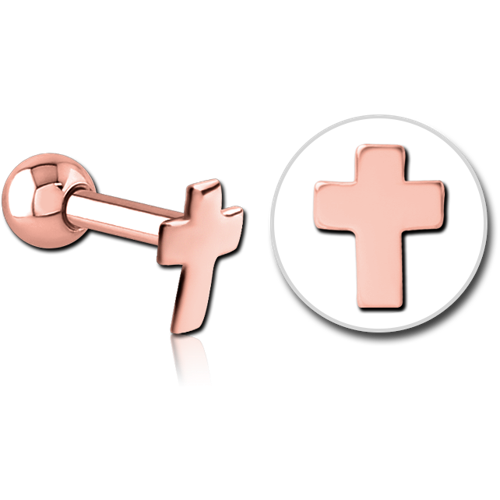 ROSE GOLD PVD COATED SURGICAL STEEL GRADE 316L CROSS TRAGUS MICRO BARBELL