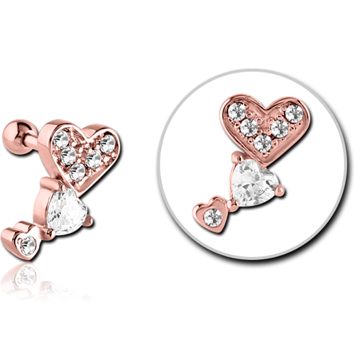 ROSE GOLD PVD COATED SURGICAL STEEL GRADE 316L JEWELED TRAGUS MICRO BARBELL - HEART