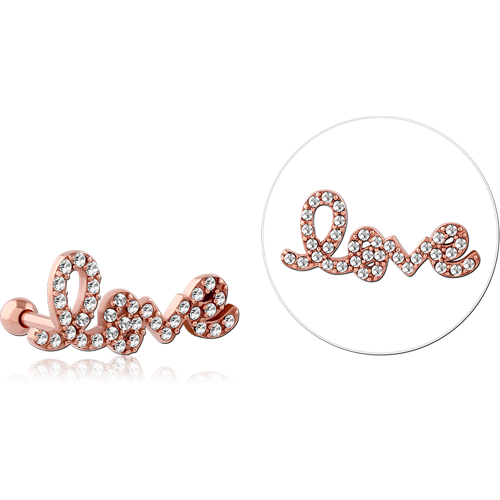 ROSE GOLD PVD COATED SURGICAL STEEL GRADE 316L JEWELED TRAGUS MICRO BARBELL