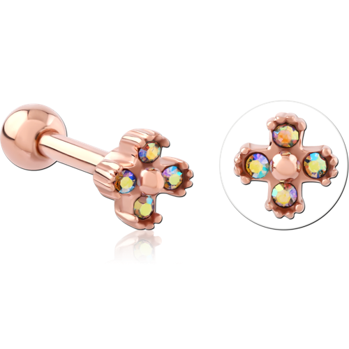 ROSE GOLD PVD COATED SURGICAL STEEL GRADE 316L JEWELED TRAGUS MICRO BARBELL