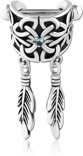 SURGICAL STEEL GRADE 316L JEWELED CARTILAGE SHIELD - DANGLING FEATHER