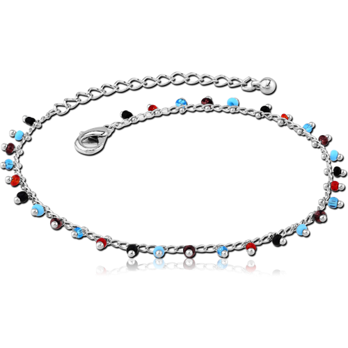 NICKEL FREE RHODIUM PLATED BASE METAL BEADS ANKLET