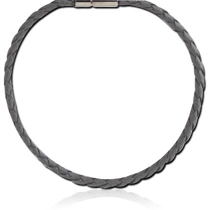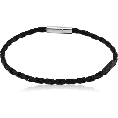 IMITATION BLACK LEATHER WEAVED BRACELET WITH PUSH FIT LOCKER