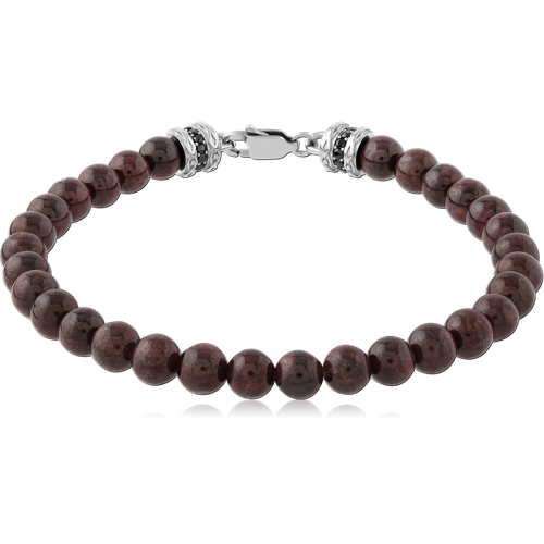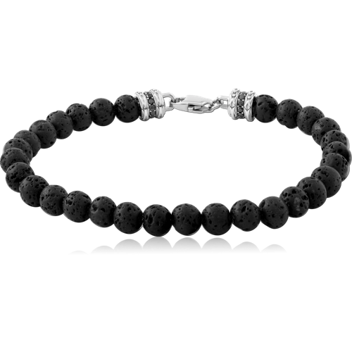 SURGICAL STEEL GRADE 316L ELLASTIC BRACELET WITH BLACK LAVA STONE BEADS