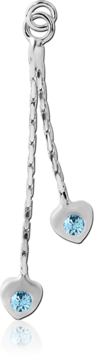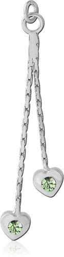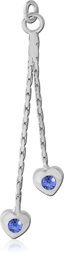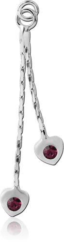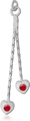 RHODIUM PLATED BASE METAL DOUBLE HEART JEWELED DANGLE CHARM