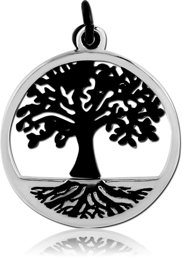 RHODIUM PLATED BASE METAL CHARM - TREE OF LIFE TWO PLATES