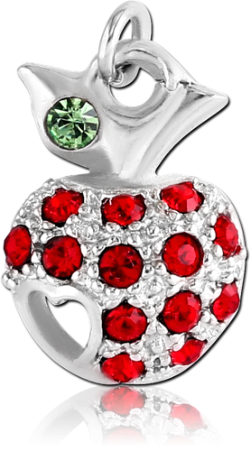 RHODIUM PLATED BASE METAL JEWELED APPLE CHARM
