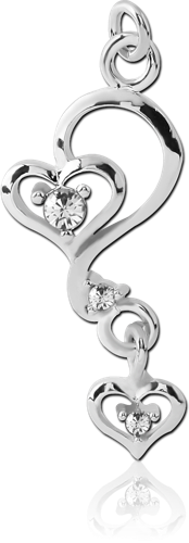 RHODIUM PLATED BASE METAL JEWELED HEARTS CHARM