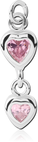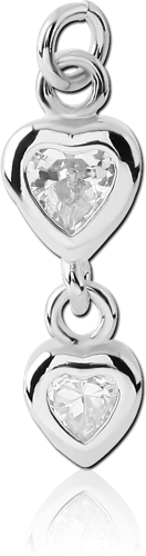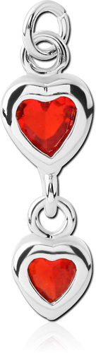 RHODIUM PLATED BASE METAL DOUBLE JEWELED HEART CHARM