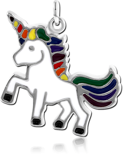 RHODIUM PLATED BASE METAL CHARM WITH ENAMEL - UNICORN