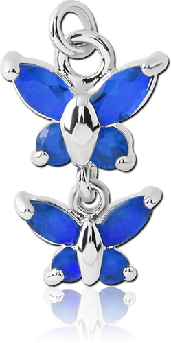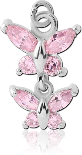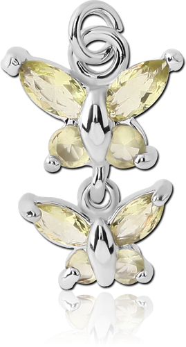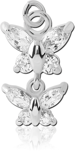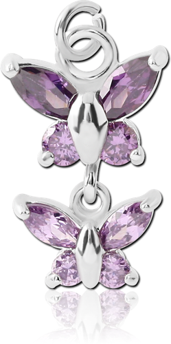 RHODIUM PLATED BASE METAL JEWELED DOUBLE BUTTERFLY CHARM