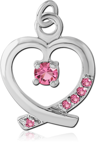 RHODIUM PLATED BASE METAL JEWELED HEART CHARM