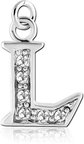 RHODIUM PLATED BASE METAL JEWELED LETTER CHARM - L