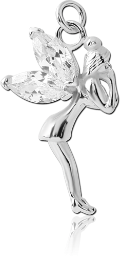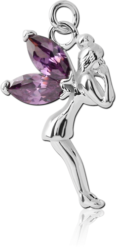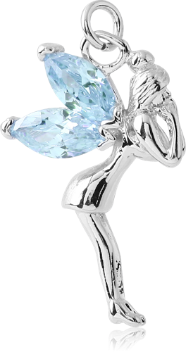 RHODIUM PLATED BASE METAL JEWELED FAIRY CHARM