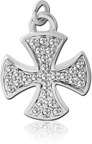 RHODIUM PLATED BASE METAL JEWELED IRON CROSS CHARM