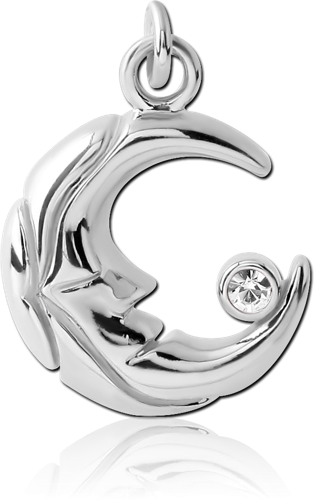 RHODIUM PLATED BASE METAL JEWELED MOON CHARM