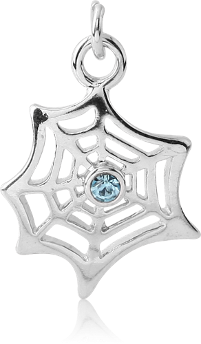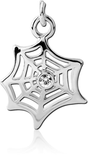 RHODIUM PLATED BASE METAL JEWELED WEB CHARM