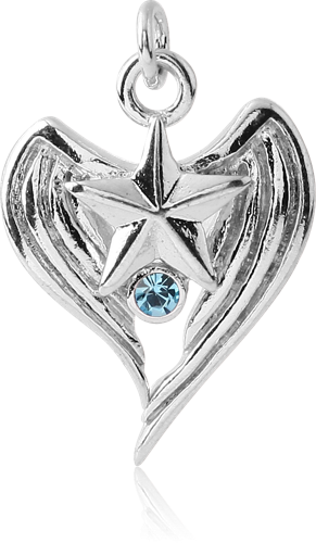 RHODIUM PLATED BASE METAL JEWELED WINGED STAR CHARM