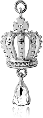 RHODIUM PLATED BASE METAL JEWELED CROWN CHARM