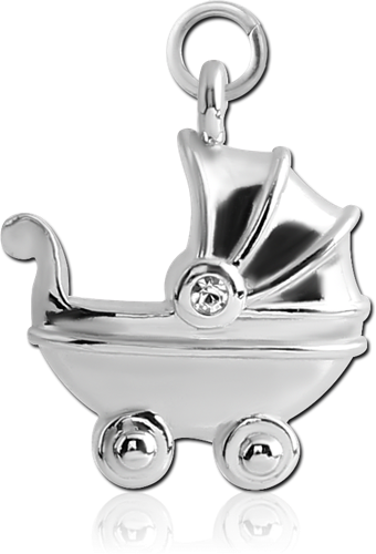 RHODIUM PLATED BASE METAL JEWELED BABY STOLLER CHARM