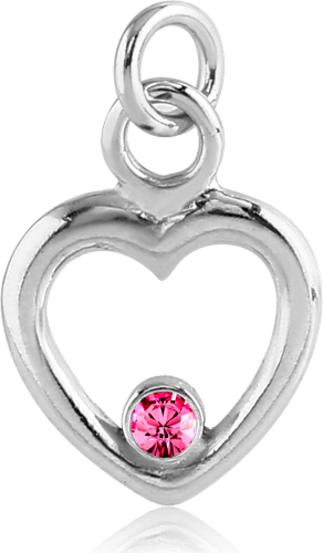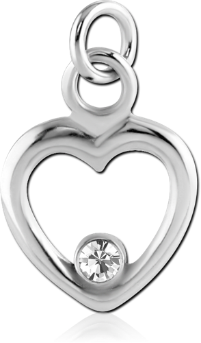 RHODIUM PLATED BASE METAL JEWELED HEART CHARM
